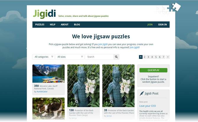 Play full screen enjoy Puzzle of the Day and thousands more. Jigidi Free Online Jigsaw Puzzles Solve create share and talk about jigsaw puzzles Welcome to our kind social community with jigsaw puzzles and puzzlers from all around the world You can pick a jigsaw puzzle below and get solving. Play online free jigsaw puzzles game online learn about jigsaw puzzles on the web join our free daily online puzzles for adults kids and more.
