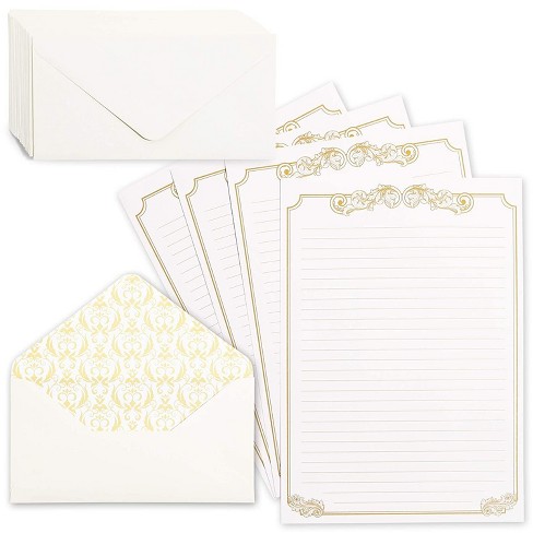 Paper Junkie 60 Pack Vintage Stationery Paper Envelopes Letter Set Classic Gold Foil Border Lined Paper 8 5 X 11 Inches Target