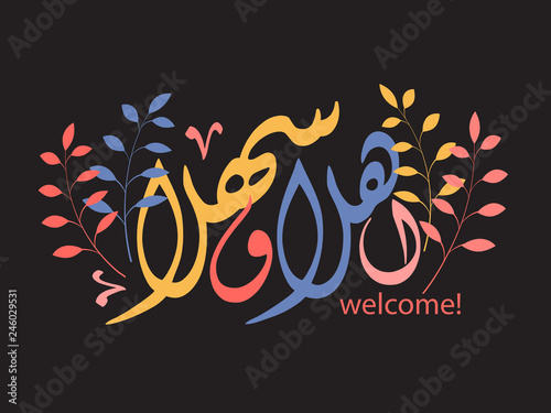 Lettering Welcome In Arabic Bright Summer Lettering Welcome Print Arabic Calligraphy Ahlan Wa Sahlan 1 Stock Vector Adobe Stock