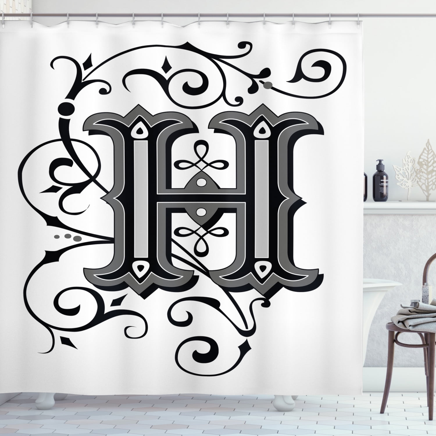 Letter H Shower Curtain Calligraphy Elements In Uppercase Letter H Design From Middle Ages Artwork Fabric Bathroom Set With Hooks 69w X 70l Inches Black Grey White By Ambesonne Walmart Com
