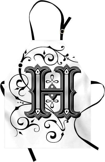 Amazon Com Ambesonne Letter H Apron Calligraphy Elements In Uppercase Letter H Design From Middle Ages Artwork Unisex Kitchen Bib Apron With Adjustable Neck For Cooking Baking Gardening Black Grey White Home