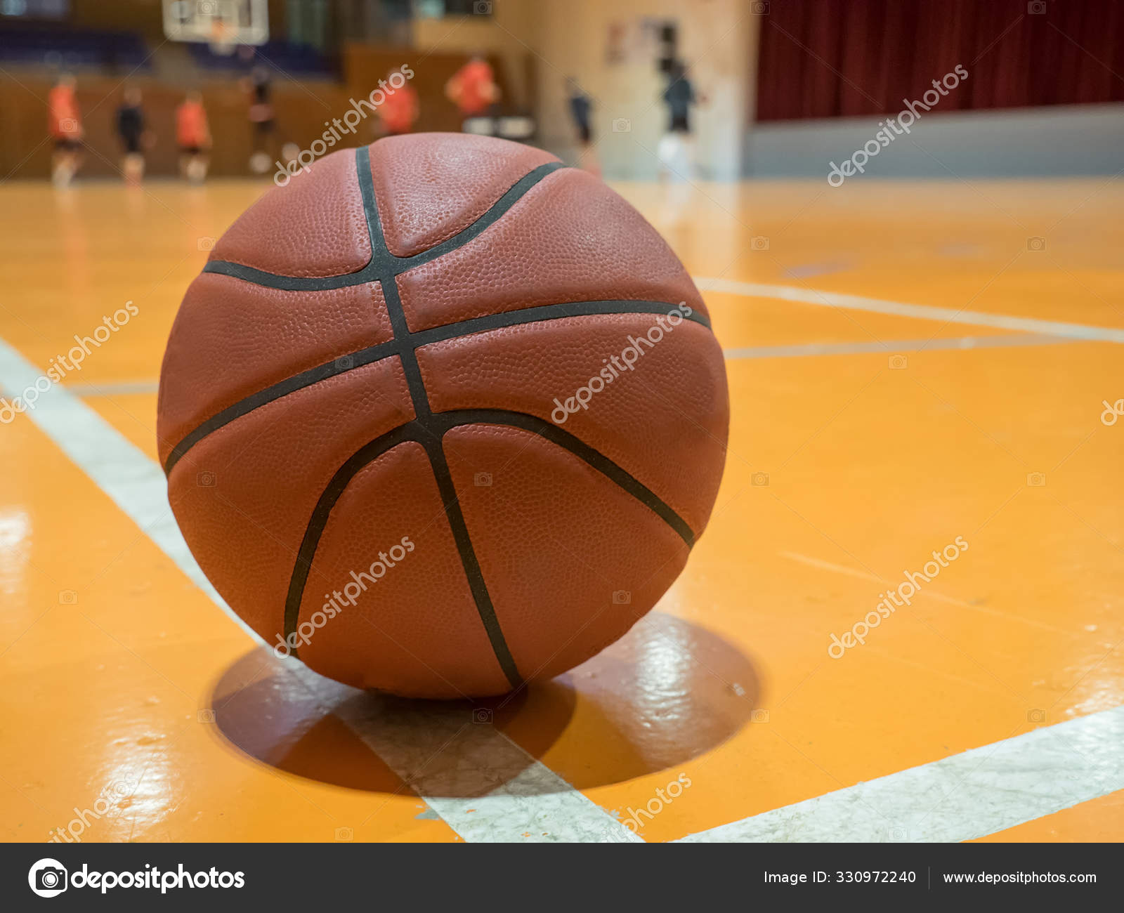 Basketball Ball On The Court With Free Throw Line Out Of Focus Basket In The Background Stock Photo Image By C Ancoay 330976842